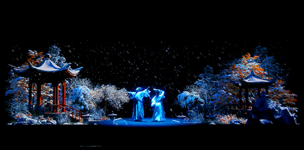 《梁山伯與祝英台》的舞台四面(miàn)通透,觀衆從任何方向(xiàng)都(dōu)可以看到舞台上的場景。表演開(kāi)始後(hòu),觀衆能(néng)觀賞到演員和舞台場景神秘地消失,四面(miàn)牆壁在通透的舞台上憑空出現,藤蔓植物在牆壁上快速生長(cháng),以及牆面(miàn)碎裂、崩塌等震撼效果。同時(shí),舞台營造的風、雪、雷、電等天氣變化都(dōu)能(néng)帶給觀衆最接近真實的觀感體驗。表演接近尾聲時(shí),梁山伯與祝英台翩翩起(qǐ)舞,最後(hòu)化身爲美麗的蝴蝶飛入花叢,凄美絢爛。整場表演看罷,如詩如畫。《梁山伯與祝英台》就(jiù)這(zhè)樣以真實、夢幻、凄美的效果向(xiàng)觀衆訴說(shuō)著(zhe)“爲愛化蝶”的千古愛情悲劇。