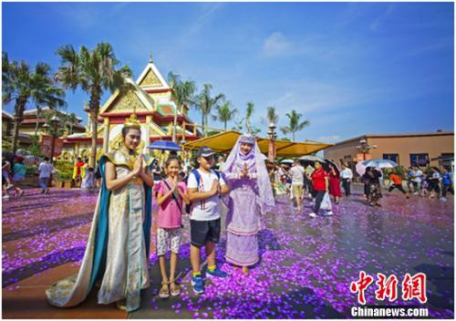 據介紹,方特東盟神畫讓遊客不出國(guó)門,一站式“打卡”東盟十國(guó)。其中,《相約下龍灣》以參觀越南郵票展的形式,遊客通過(guò)無軌迹尋迹遊覽車跟随主角一起(qǐ)感受當地特色水上集市、名勝古迹;《塔銮盛典》則運用360度巨型環幕呈現了老撾象征千年塔銮寺的建設曆程和曆史變遷;《千島之歌》主要以程控魔球、魔幻舞台和經(jīng)典演藝等形式,爲遊客呈現印度尼西亞獨有的節慶文化和民俗風情;《馬六甲勇士》通過(guò)大型漂流河道(dào)、水幕電影、海嘯災難模拟、虛實場景相結合,爲遊客講述了馬來西亞民族英雄漢都(dōu)亞大戰海盜的傳奇故事(shì)。