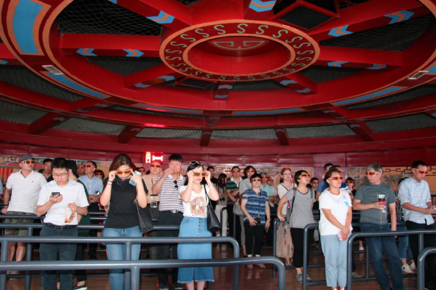 次日,華強方特盛邀參編單位專家全面(miàn)了解方特主題樂園的不同産品。與會(huì)專家先後(hòu)參觀了方特歡樂世界、方特夢幻王國(guó)兩(liǎng)座主題樂園。專家們饒有興緻地體驗了《飛越千裡(lǐ)江山》、《千古蝶戀》等項目,給予極高的評價和贊譽。大家表示,方特主題樂園的高科技“飛行觀畫”模式,讓人仿佛真的“翺翔”于千裡(lǐ)江山間,如臨其境體會(huì)了傳世國(guó)寶的動人魅力。如夢如幻的“千古蝶戀”運用四面(miàn)“幻影成(chéng)像”全息投影舞台,配合專業演藝者的現場表演,亦真亦幻地演繹了梁山伯與祝英台的曠世之戀,高科技與舞台藝術完美結合的演出,赢得現場體驗的專家們一緻好(hǎo)評。
