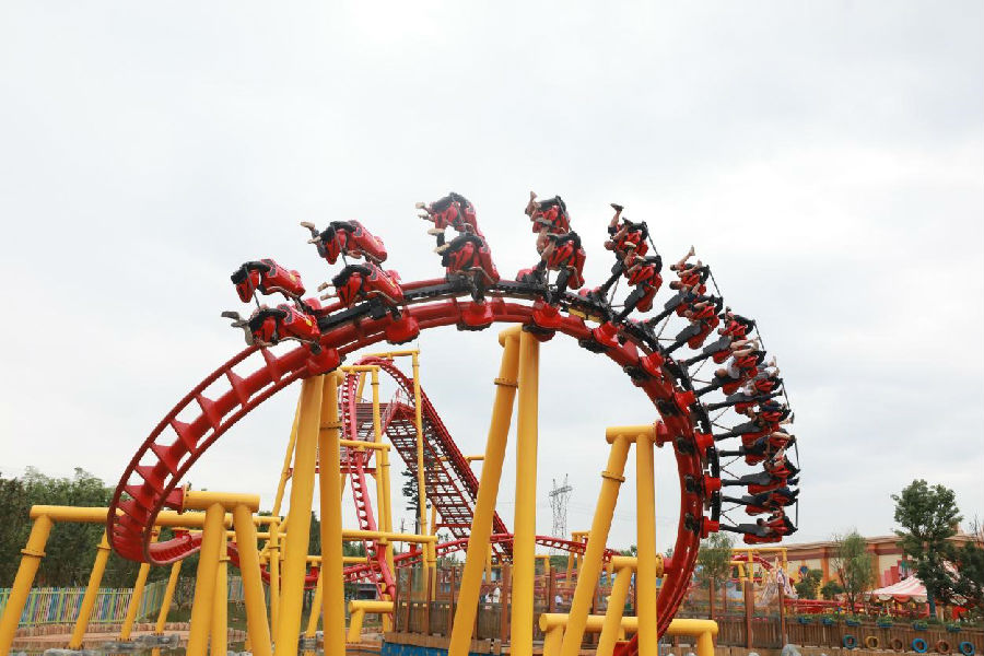 ▲過(guò)山車之夢俱樂部成(chéng)員體驗合家歡懸挂式過(guò)山車《馬戲飛車》。