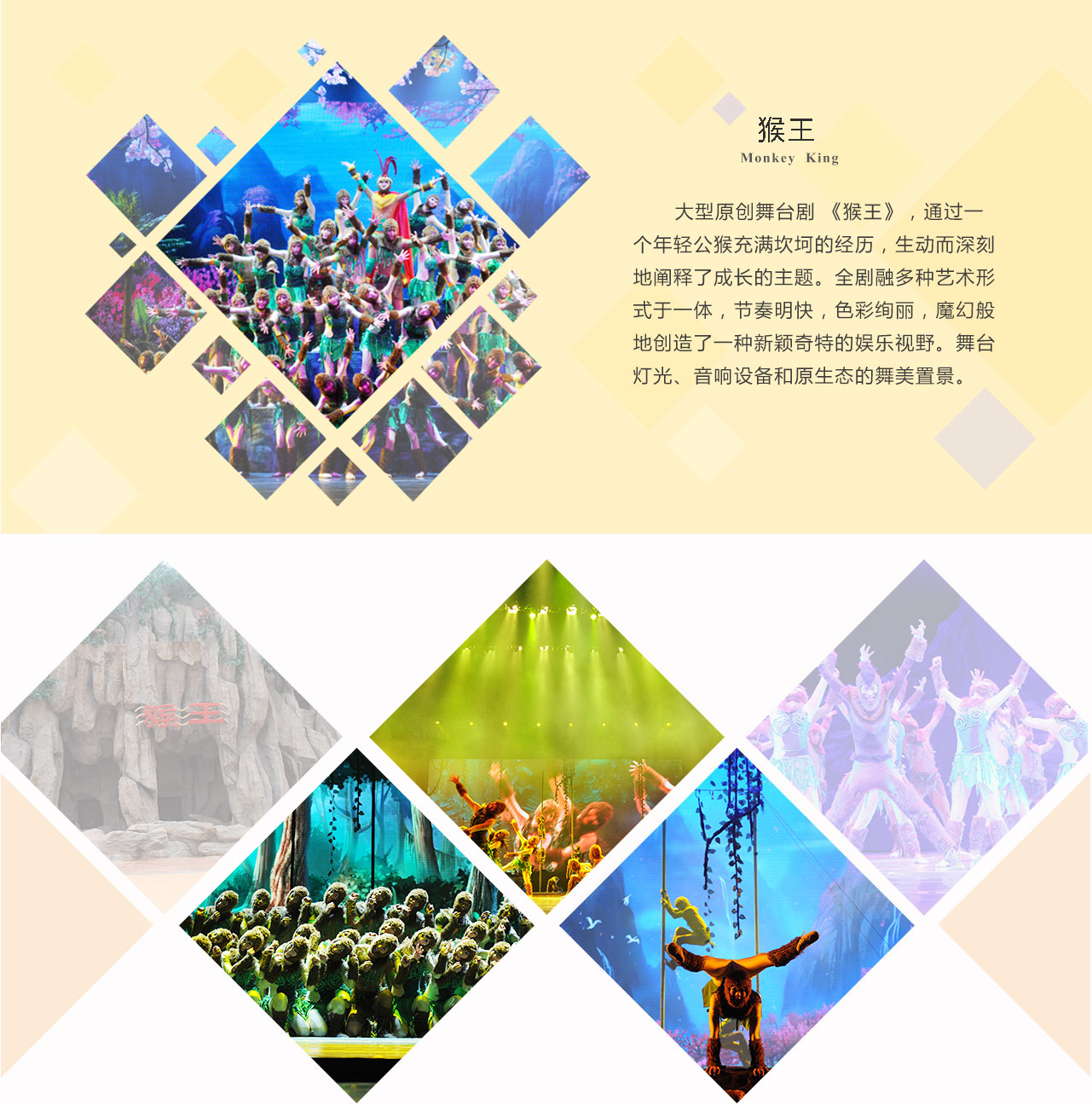 華強方特借助在自動控制、人工智能(néng)、機械設備、影視特技等方面(miàn)的優勢,成(chéng)功打造"猴王"、"飛翔之歌"、"孟姜女"等多個令人歎爲觀止的主題演藝項目,以現代高科技表現手段爲核心,集合現代音樂、舞蹈、雜技、武術、戲劇、多媒體等多種(zhǒng)藝術要素于一體,呈現氣勢磅礴,美輪美奂的舞台效果。其中,大型程控矩陣真人舞台表演項目《孟姜女》榮獲2015 IAAPA"銅環獎"特别頒發(fā)的最震撼人心獎,大型演藝項目《猴王》摘得2014 IAAPA"銅環獎"最佳現場演出獎,演藝劇目《在馬戲團的日子》獲得第八屆中國(guó)舞蹈"荷花獎"當代舞表演銀獎。