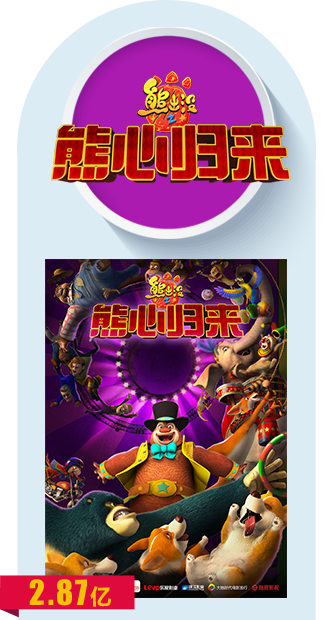 方特動漫出品的原創動畫電影《熊出沒(méi)之奪寶熊兵》、《熊出沒(méi)之雪嶺熊風》、《熊出沒(méi)之熊心歸來》、《熊出沒(méi)•奇幻空間》、《熊出沒(méi)·變形記》、《熊出沒(méi)·原始時(shí)代》、《熊出沒(méi)·狂野大陸》、《熊出沒(méi)·重返地球》、《熊出沒(méi)·伴我“熊芯”》相繼于2014-2023年登陸全國(guó)院線,累計票房超57億。
