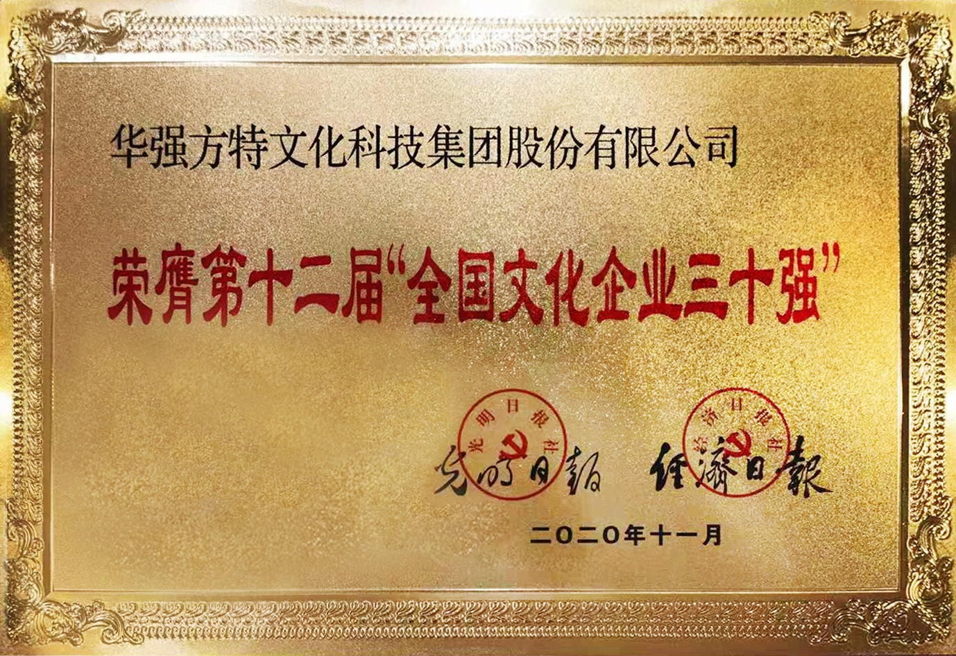11月16日,由中宣部組織召開(kāi)的第十二屆“全國(guó)文化企業30強”座談會(huì)上,光明日報和經(jīng)濟日報聯合發(fā)布了2020年“全國(guó)文化企業30強”榜單,深圳文化科技領軍企業——華強方特集團憑借優秀的市場業績和創新成(chéng)果,再度成(chéng)功入選。全國(guó)文化企業30強是我國(guó)文化産業領域最權威的一..
