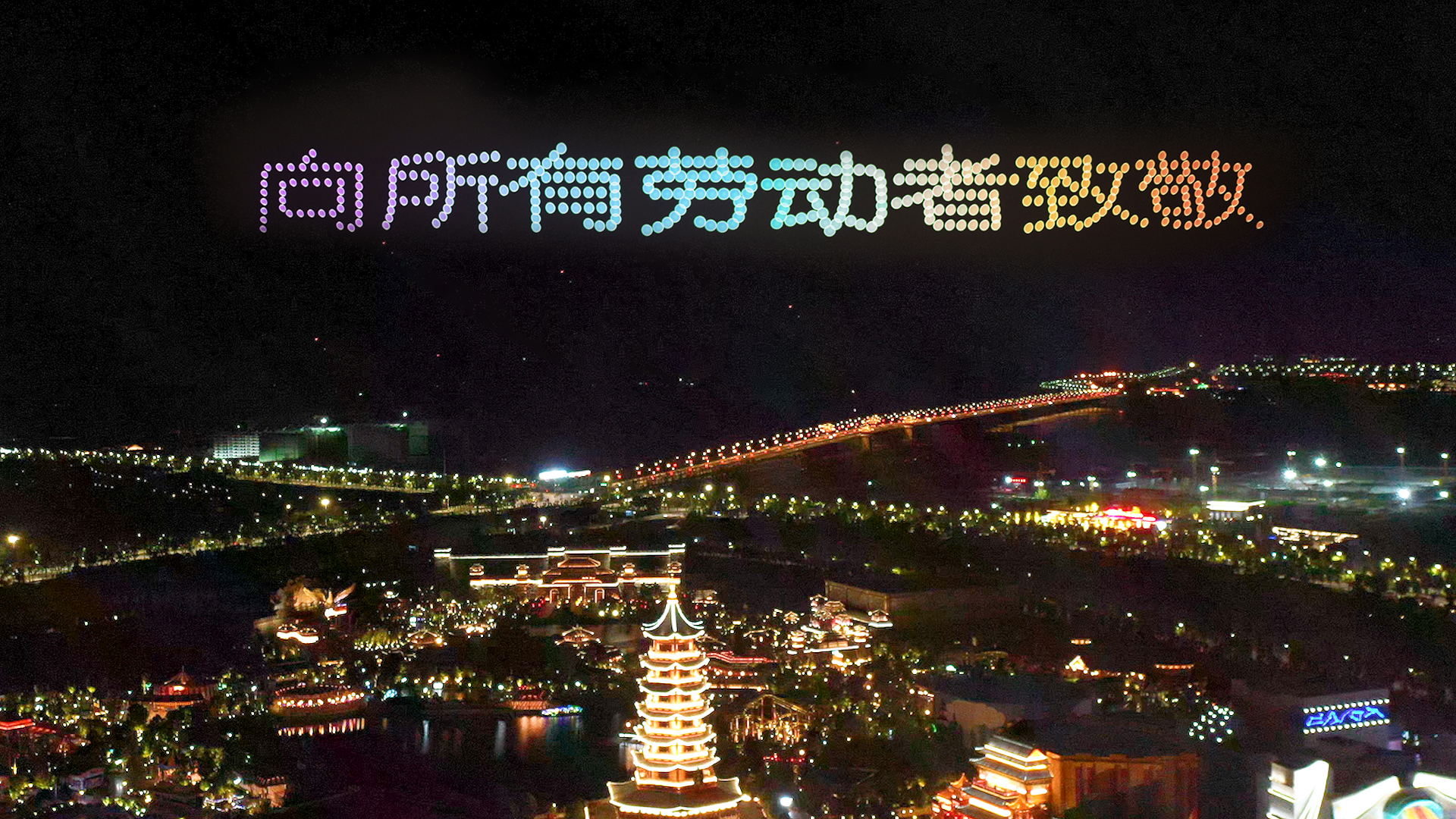 千架無人機秀緻敬勞動者 荊州方特獲媒體聚焦